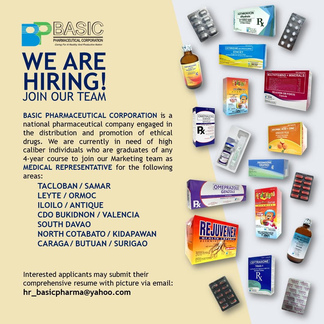 VisMin Team - Interested applicants may submit their comprehensive resume with picture via email: hr_basicpharma@yahoo.com